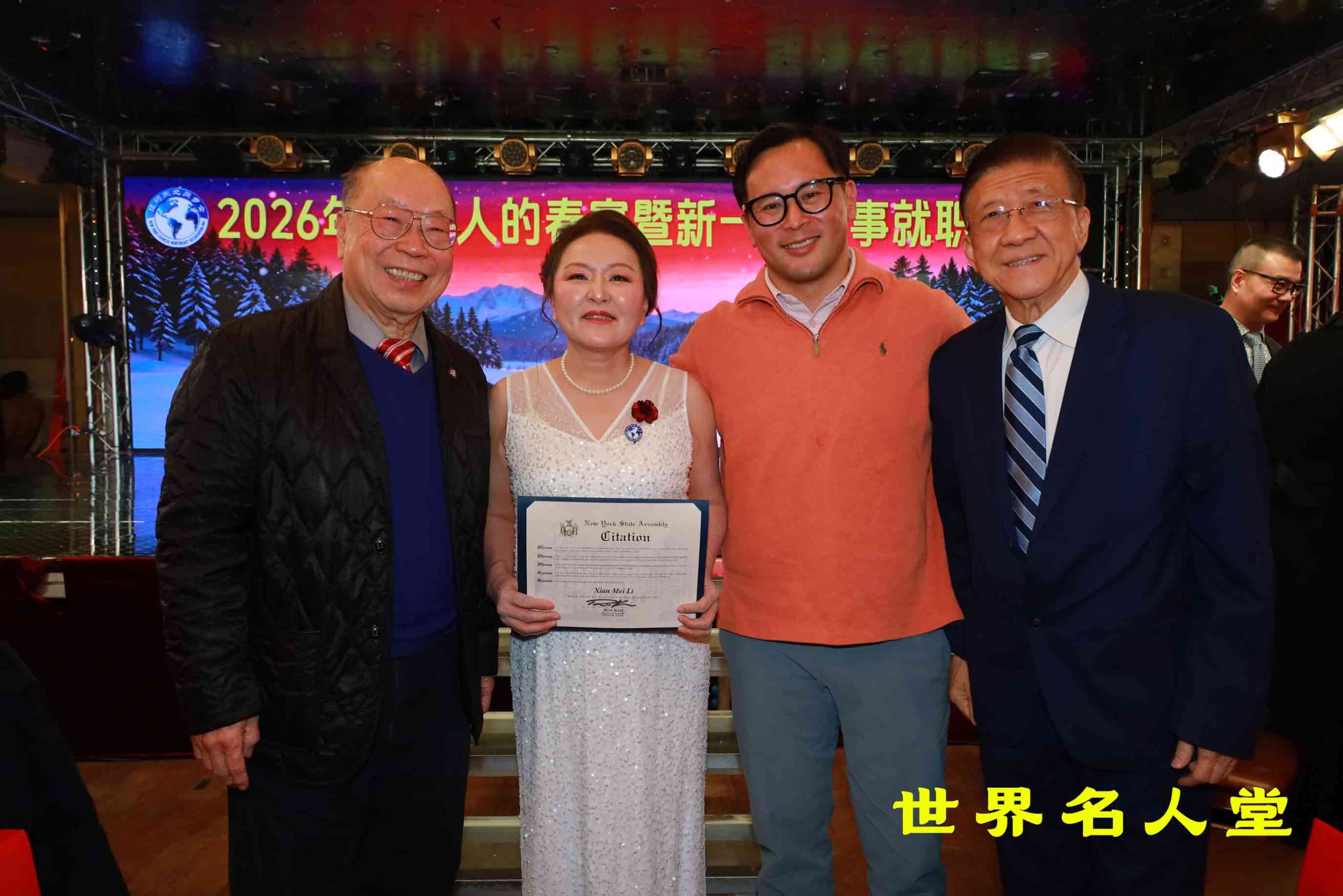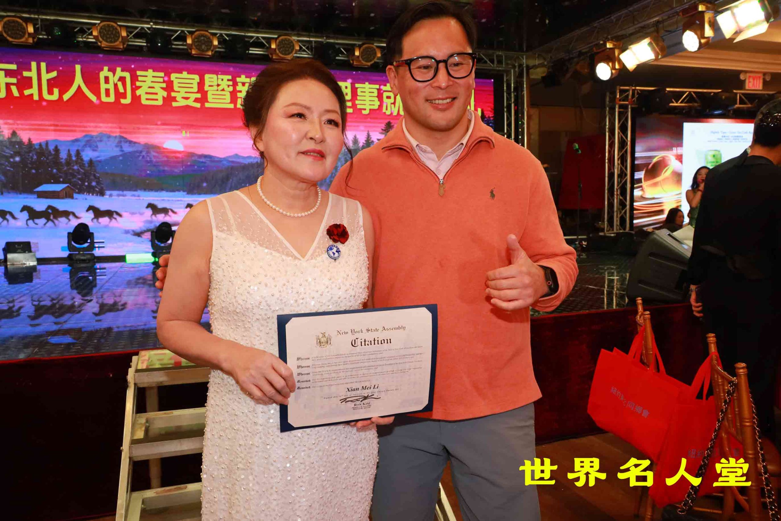 1月24日,紐約東北同鄉會於法拉盛舉辦了2026春宴暨新一屆理事就職典禮.會長李香梅攜該會骨幹出席.本場晚宴吸引眾多嘉賓到場,中美官員,僑界領袖,中美地產大亨,商業巨擘大鱷,律政權威泰斗,行業領軍大拿悉數出席.中領館副總領事孫麗萍,僑務處主任潘焱親臨,美國國會議員孟昭文,紐約州參議員劉醇逸,陳學理,州眾議員金兌錫,鄭永佳,市議員黃敏儀及市警社區聯絡官Alden Foster等到場並頒發獎狀.美國福建同鄉會主席陳恆,美國福建會館主席陳昭銀,亞裔之友總聯盟主席李天驥,紐約溫州同鄉會會長王崇章,名譽會長張勝耀,紐約緬甸華僑聯誼會主席蘇煥光,旅美上海同鄉會主席周允,美國河南同鄉會主席王繼成,美國江浙工商總會候任會長張玲華,美國上海同鄉會主席沈珺等應邀出席.各界人士約900人齊聚一堂,共享盛舉.
