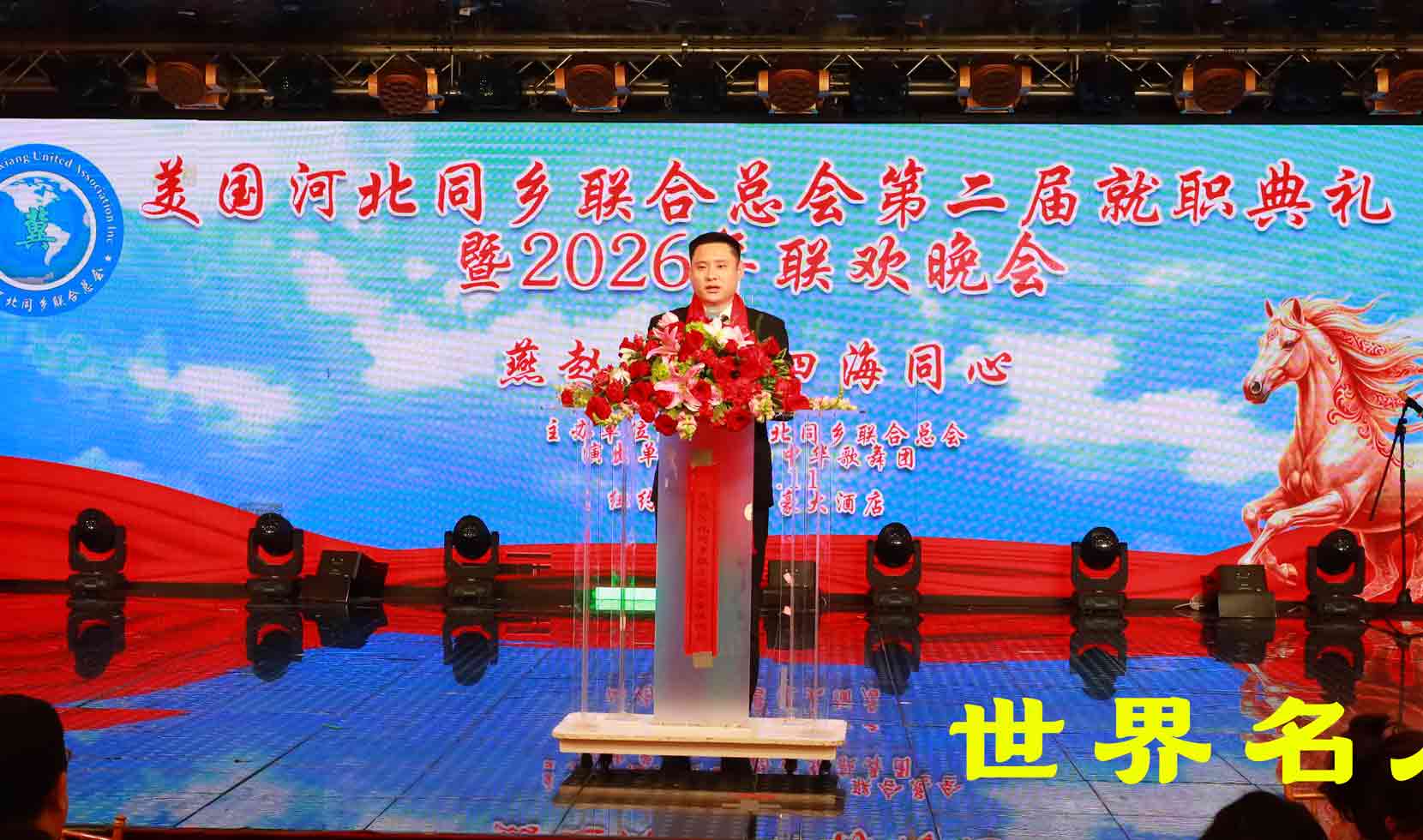 在這辭舊迎新的美好時刻,我們歡聚一堂,共同舉辦第二屆美國河北同鄉聯合總會暨 2026 新春聯歡晚會。在此,我謹代表美國河北同鄉聯合總會,對各位嘉賓、各界朋友以及所有河北鄉親的到來,表示誠摯的歡迎和衷心的感謝。