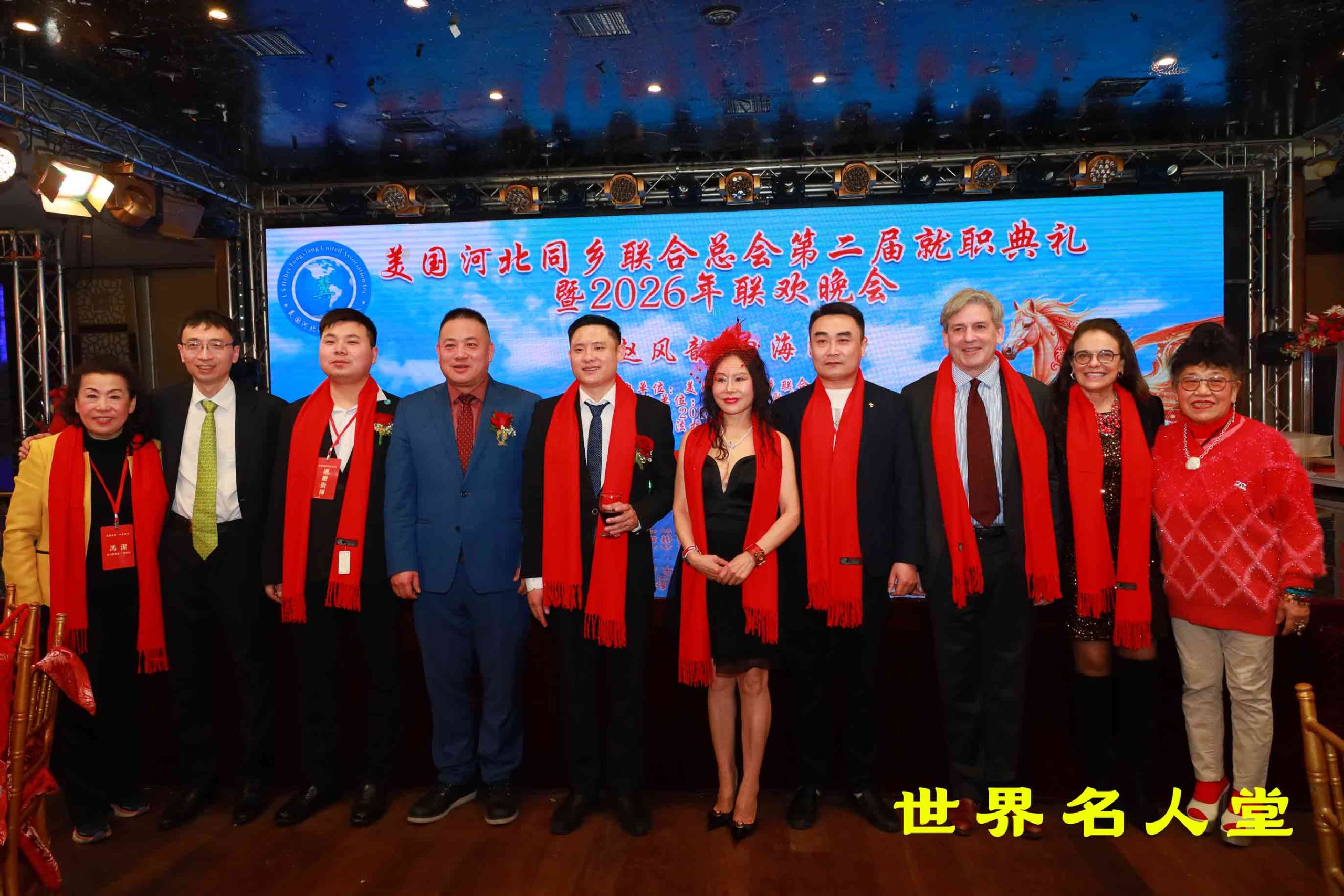 2月11日,美國河北同鄉聯合總會第二屆就職典禮暨2026年聯歡晚會於紐約法拉盛成功舉辦.美國河北同鄉聯合總會主席劉少勇攜骨幹出席.中國駐紐約總領館僑務副主任李德,領事周凱良到場.美國國會議員孟昭文代表李熙慶,紐約州眾議員金兌錫,州參議員劉醇逸代表蘇女士,市議員黃敏儀到場並頒發獎狀.中美官員,僑界領袖,社會賢達,河北鄉親近700人,齊聚一堂,共享盛舉.