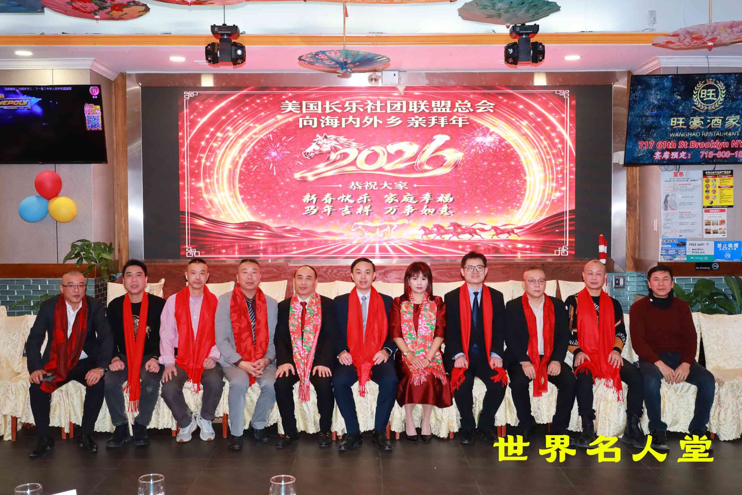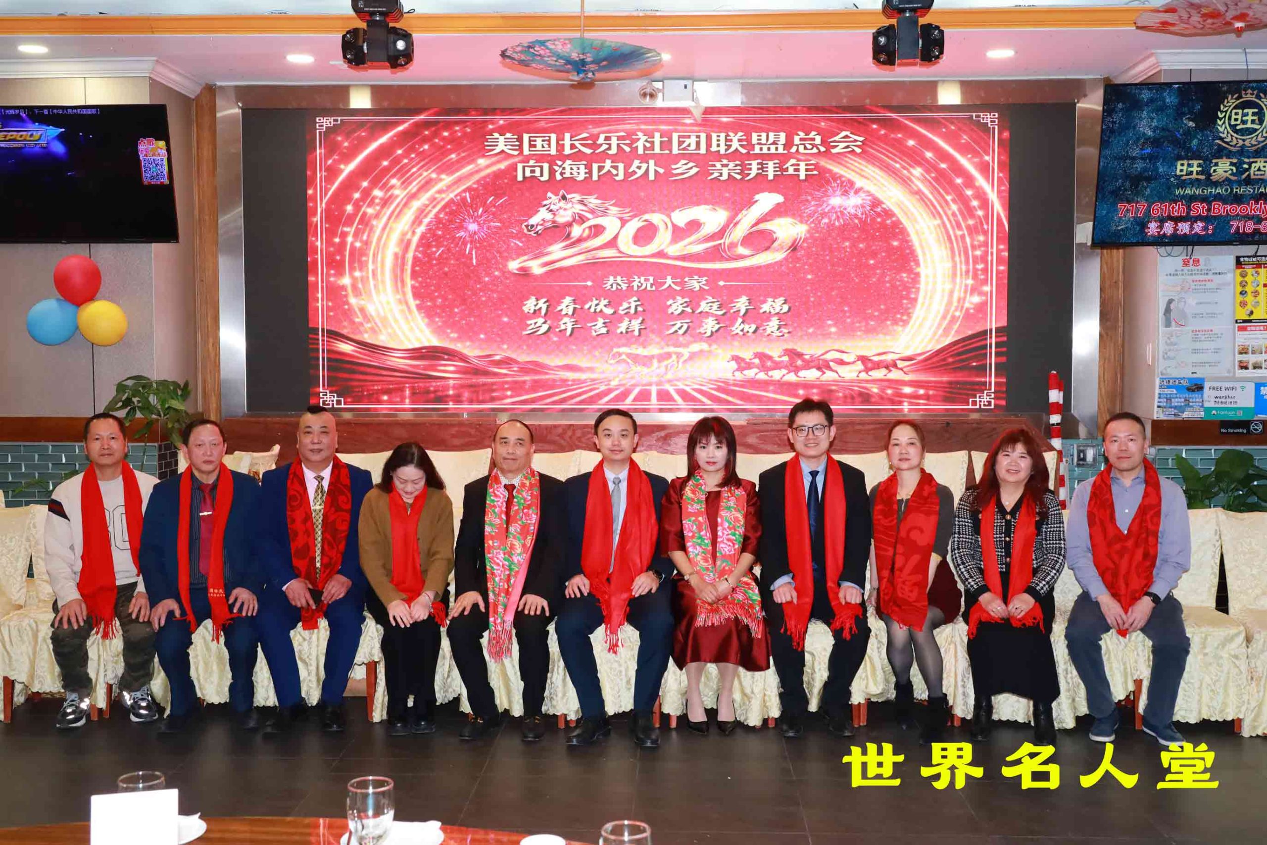 2月12日,美國長樂社團聯盟總會於布碌侖旺豪酒家舉行了團拜活動.輪值主席陳雲,施廣義,秘書長陳文,辦公室主任王文美與數十位僑界領袖共同出席.中國駐紐約總領館僑務處主任潘焱,領事周凱良親臨.近百位聯盟骨幹,社會賢達,齊聚一堂,共襄盛舉.