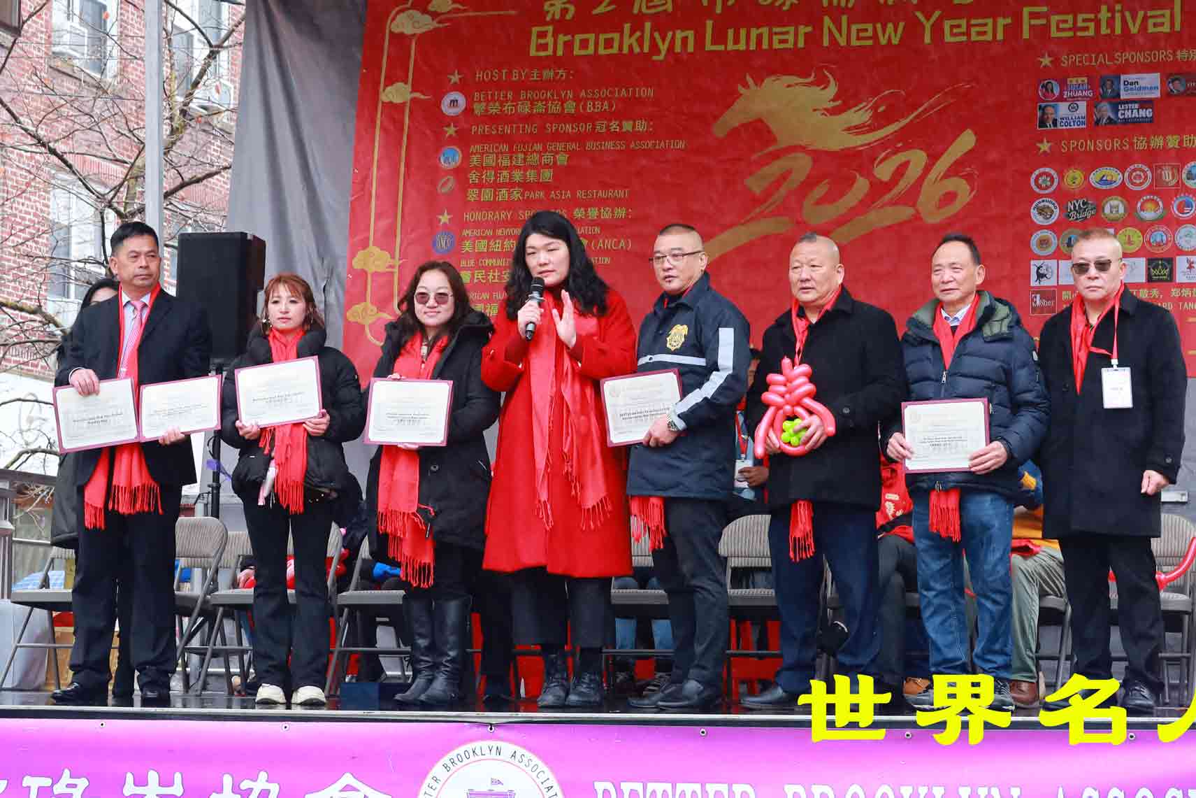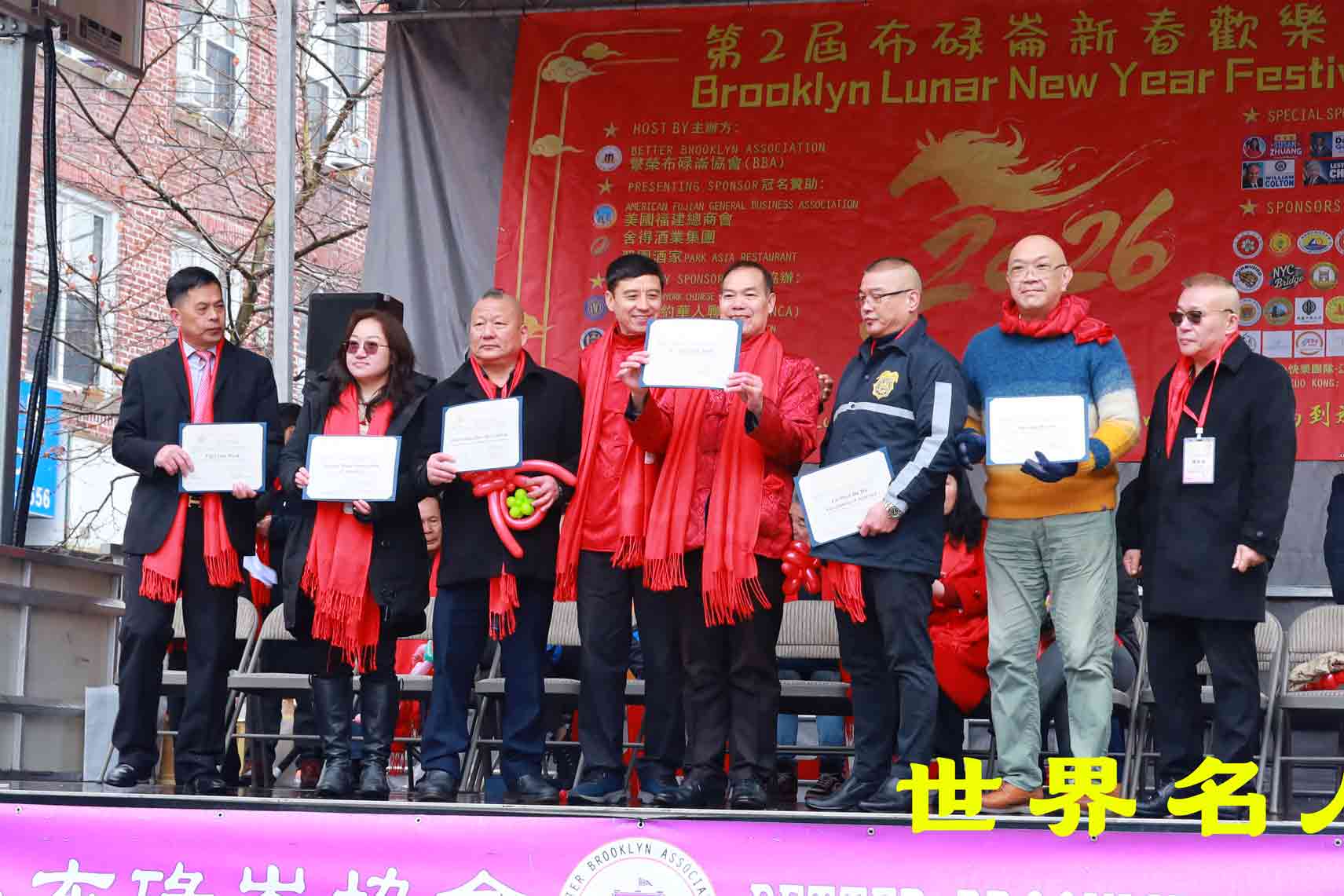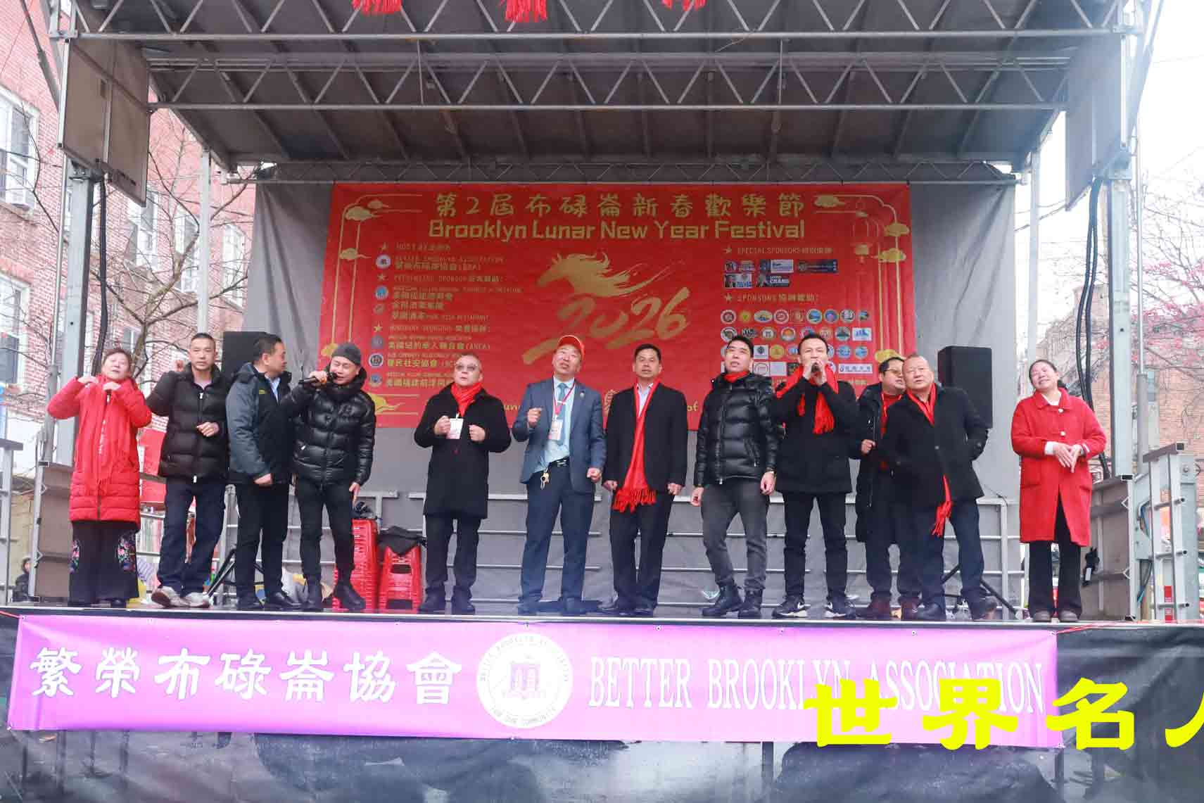 2月20日,萬眾期待的第2屆布碌侖新春歡樂節於八大道如期登場.繁榮布碌侖協會主席黃晵旺攜該會骨幹及眾多贊助團體機構出席.美國國會議員高德曼, 紐約市議員莊文怡,州參議員陳學理,州眾議員寇頓,州眾議員鄭永佳,市議員黃友興代表BEN,紐約市警察局社區事務總局二星助理警監Victoria Perry,第72分局局長莫賓·亞辛(副督察),第66分局局長Kenneth Herrarte(副督察),布碌侖保守黨俱樂部主席Frances Vella-Marrone,議員幕僚長賀立寧,第49選區領袖謝曉瓊,市議員韋娜芙代表狄鍾琪,布碌侖地區檢察官蔣沙樂政府間事務助理兼東亞裔事務負責人邢文晴等到場支持.